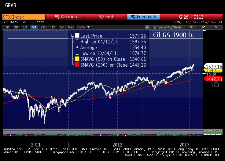 Analytici GS ve svém reportu očekávají letošní globální růst na úrovni 3,3 %, zatímco v letech 2014 – 2016 očekávají zrychlení na 4 %. Pokud by došlo k dosažení vrcholu ziskových marží a ty by se vrátily na dvacetiletý průměr, tak by to znamenalo snížení cíle u S&P 500 na 1700 při 5,5% ročním výnosu do roku 2016. Ještě větší nebezpečí pro akcie představuje případné zastavení růstu poměru P/E (cena/zisky), což by znamenalo snížení cíle na 1600 s pouhým 3,4% ročním výnosem.